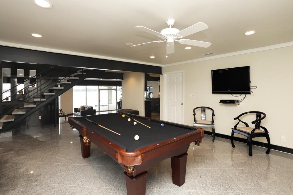 Полы двухэтажного дома, расположенного на берегу озера, облицованы светло-серым зернистым гранитом с полированной фактурой. Выбор заказчика остановился на проверенном и надежном камне сорта Imperial White. Для него характерен равномерный рисунок темных вкраплений и ничем не выдающаяся текстура. Заказчик хотел установить прочный неподвластный времени каменный пол, который смотрелся бы скромно и непримечательно, не привлекая к себе внимание. Гранит Imperial White - идеальный камень для реализации задачи такого рода.