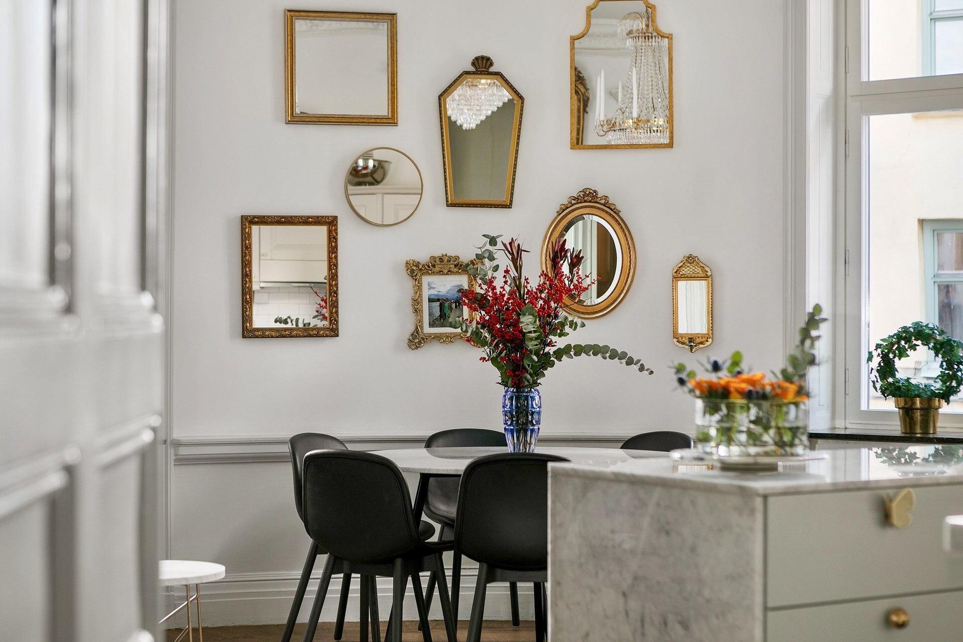 Потрясающий проект реконструкции круглой комнаты в старинном доме. Круглая зала превращена в элегантную и уютную студию, совмещающую кухню, столовую и гостиную.