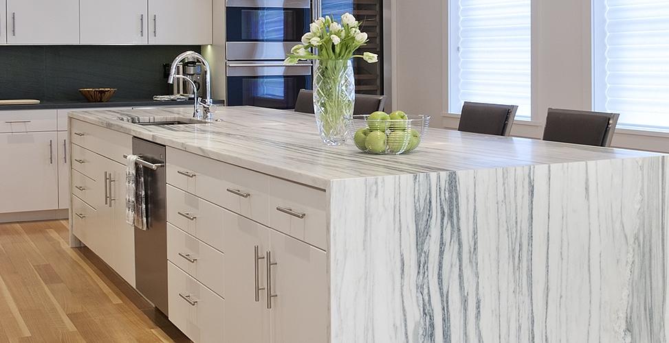 Изделие выполнено из крупных слэбов итальяского мрамора Calacatta Zebrino - элегантного, белоснежного со строго-параллельной полосчатостью.