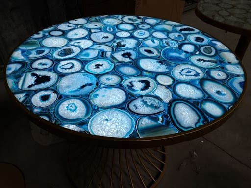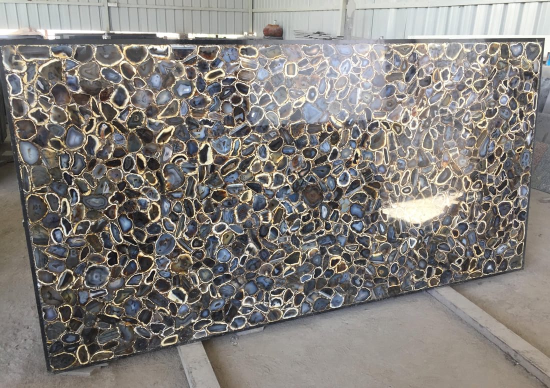 Сегодня из агата делают целые слэбы и плиты, которые в дальнейшем используются для оформления элитных интерьеров. Крупные плиты делают методом склейки отдельных камней эпоксидной смолой под давлением с последующей резкой на тонкие пласты. Таким агатом отделывают стены, полы, лестницы, из него делают столешницы, подоконники, каменную мебель.