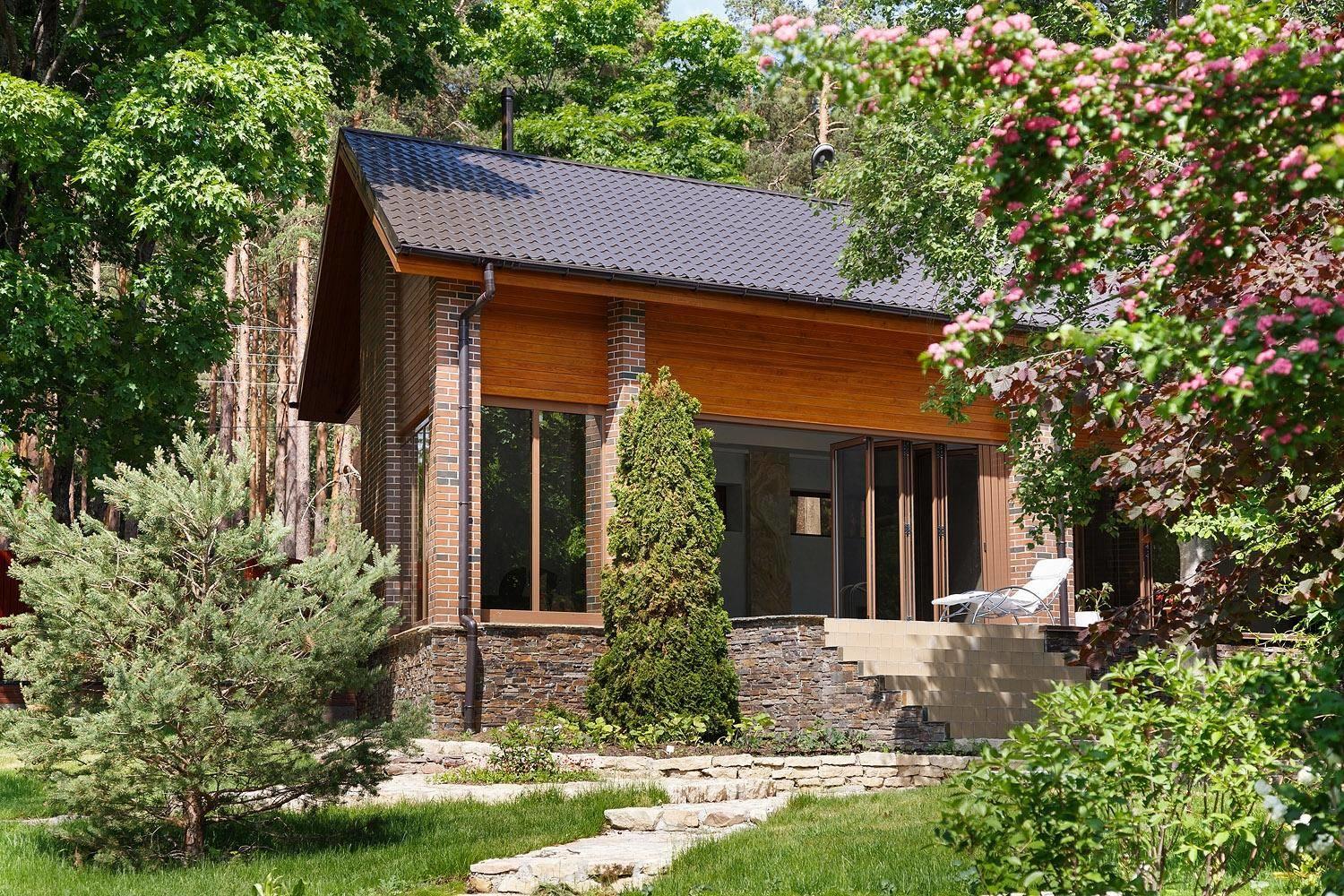В проектировании частных загородных территорий чаще всего отдается предпочтение известняку, кварциту, песчанику и сланцу. Эти камни смотрятся более органично, зачастую их используют в необработанном виде - крупные валуны, галька, булыжник, колотые плиты для мощения дорожек и лестниц.