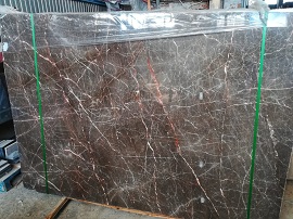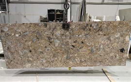 Поступление тёмно-коричневого мрамора с окаменелыми моллюсками.