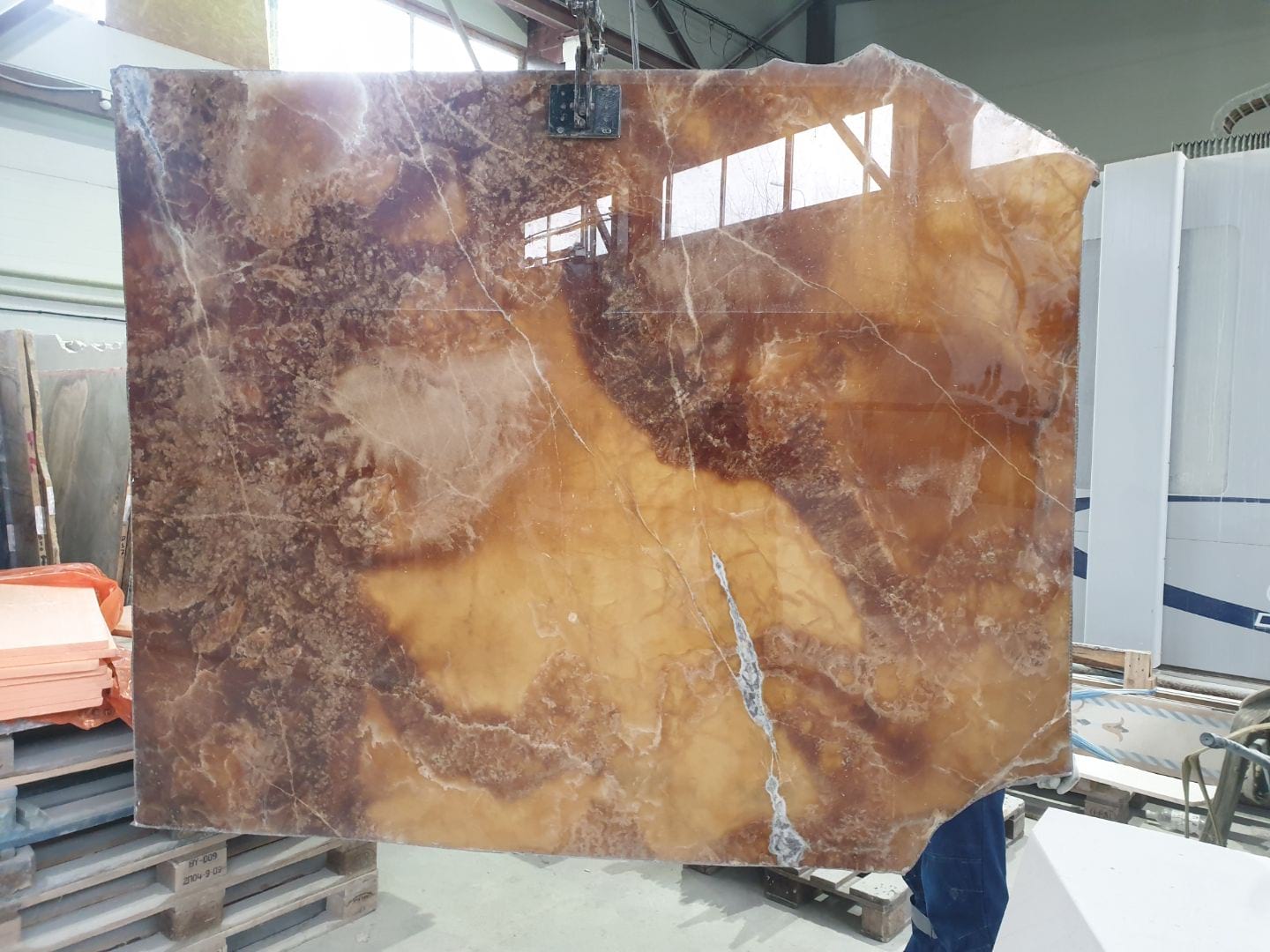 Onyx Ambra это коричневый Оникс из Италии с бежевыми, горчичными и темно-коричневыми оттенками.