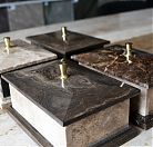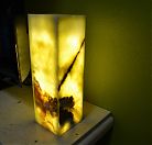 Пепельницы из мрамора, мыльницы из плотного известняка, изысканные шкатулки, нарды и даже каменные шахматы, стильные подставки для телефона из черного сланца, разделочные доски, вазоны и кашпо. Одной из самых ярких наших идей стало создание ряда уникальных настольных светильников из мраморного оникса. Электрический свет, проходящий сквозь полупрозрачный яркий камень с кружевным рисунком - поистине завораживающее зрелище.