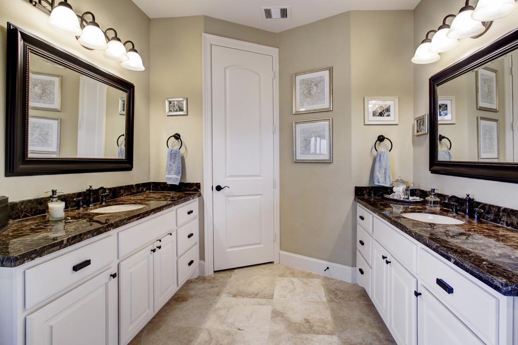 Перед нами проект роскошной и просторной ванной комнаты в загородном доме. Стилистика помещения выдержана в классическом элегантном стиле с преобладанием дорогой отделки в бежево-коричневых оттенках.