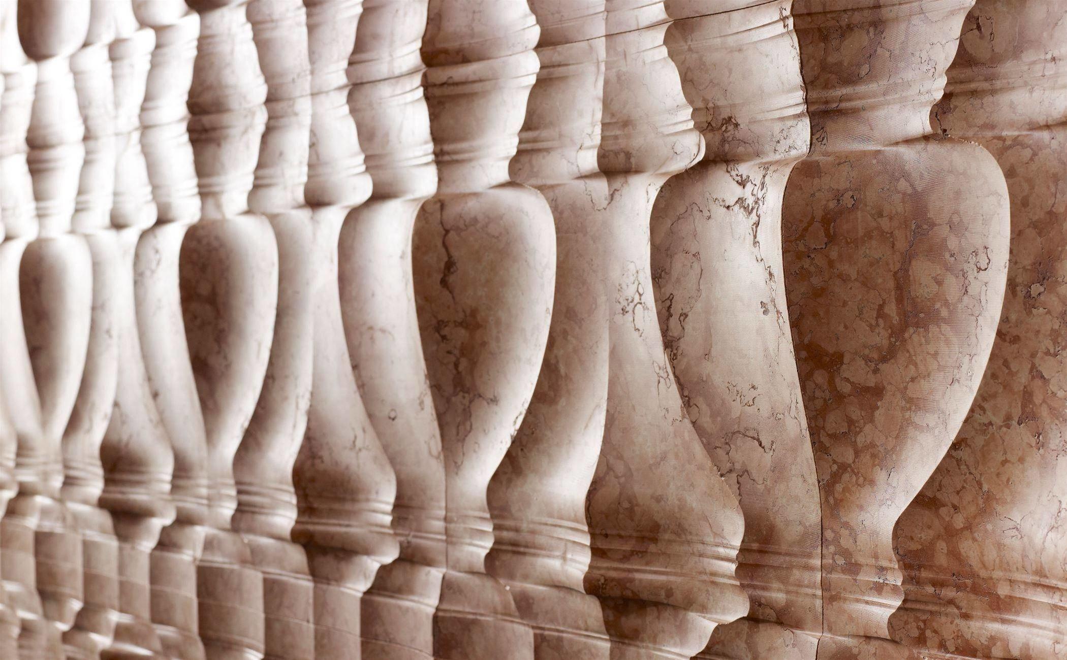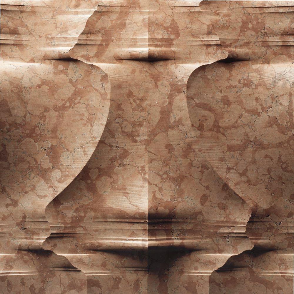 В данном проекте был задействован популярный итальянский мрамор Rosso Verona с узорчатой текстурой в терракотовой гамме. Дизайнер придумал крайне необычный рисунок рельефа - напоминающий контуры античных ваз.