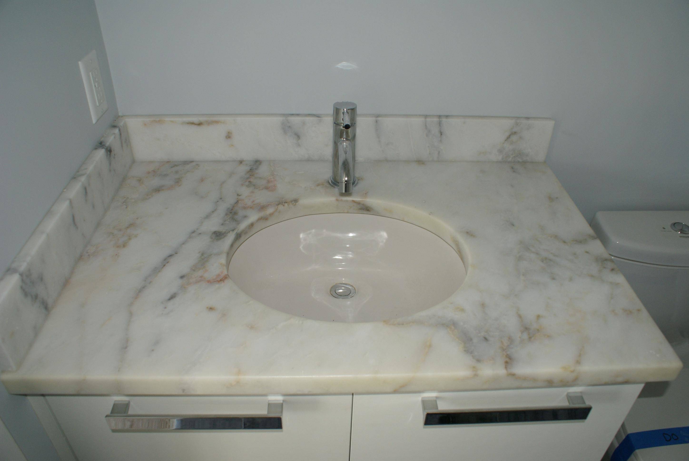 Столешница, обрамляющая раковину в ванной комнате, выполнена из легендарного греческого мрамора Afyon Sugar. Этот сахаристый белый камень испещрен прожилками серого, бурого и золотистого тона. Такой рисунок способствует более благородному, будто состаренному, виду изделия. В лощеной фактуре камень имеет бархатистую, гладкую поверхность, лишенную блеска.