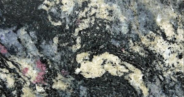 Все столешницы выполнены из удивительного индийского гранита Amadeus - камня с сказочным витиеватым рисунком серых, белых, гранатовых, сиреневых и голубых вкраплений. Фактура поверхности - полировка.