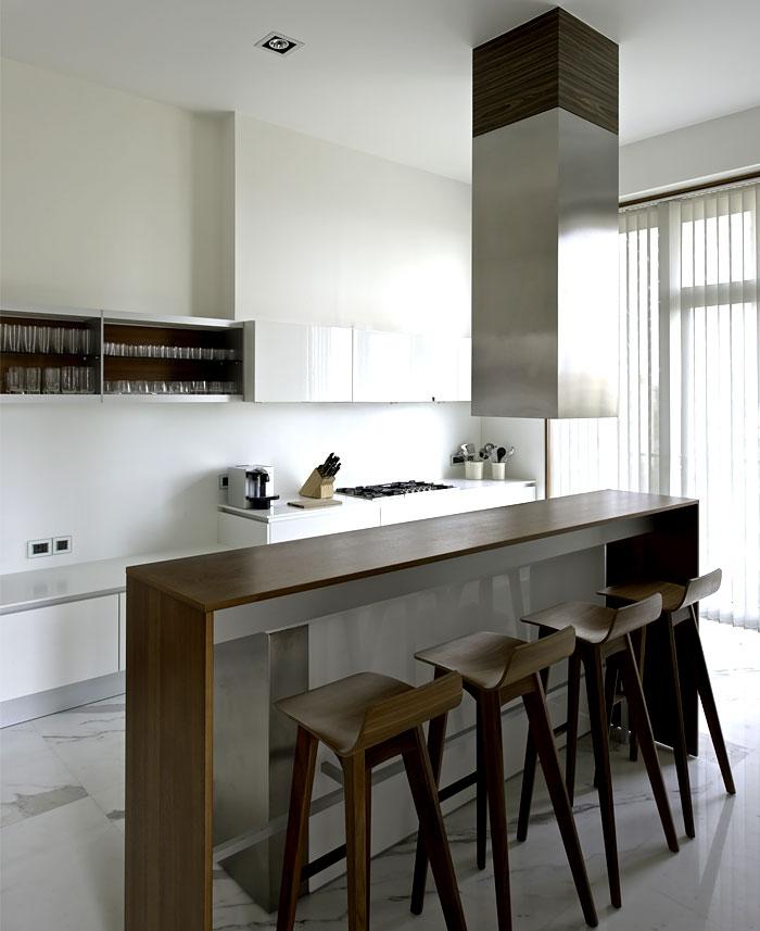 Минимализм и эргономика дизайна воплощены в идеальных пропорциях и неожиданных формах. А дорогостоящие материалы отделки и интерьерные аксессуары придают этому проекту атмосферу элитарности, лоска, роскоши.