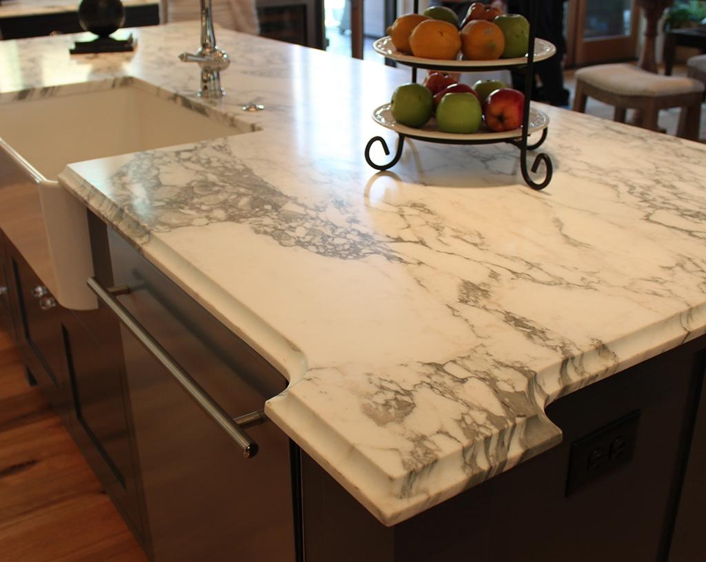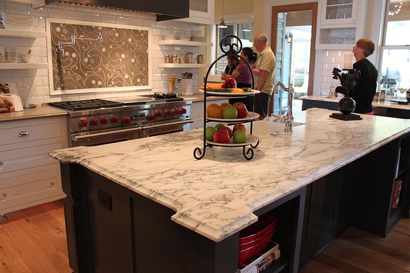 Arabescato Vagli - изысканный итальянский мрамор с четким рисунком темных прожилок. Именно он был выбран для создания кухонных столешниц.