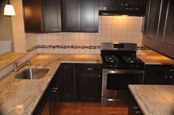 Все столешницы этой кухни вырезаны из полированного гранита Astoria Gold - золотистого камня с волнистым рисунком темных вкраплений. Astoria Gold смотрится естественно и органично, этот камень легко встраивается в проекты любой стилистической направленности.