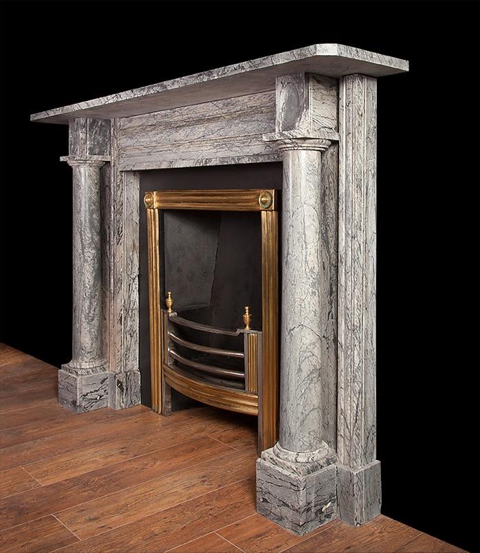 Перед нами роскошный камин в неоклассическом стиле. Стройность множественных прямых линий, колонны в дорическом ордере, отсутствие сложного орнамента - эти характеристики придутся по вкусу ценителям искусства. Лаконичный и монументальный, такой стиль всегда считался "мужским".