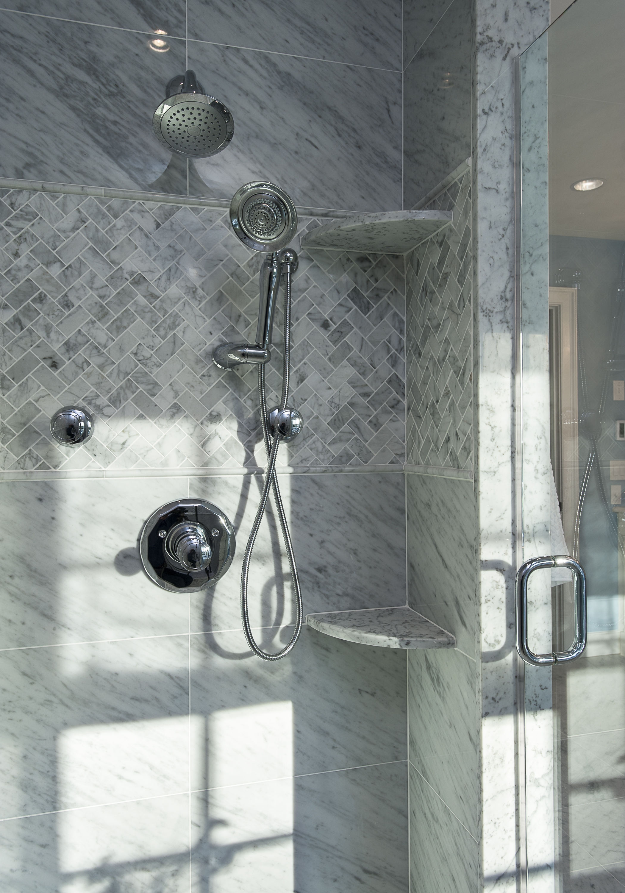 Выбрав Bianco Carrara в качестве отделочного материала, владельцы дома были предупреждены об особенностях "характера" этого мрамора. Этот камень легко впитывает загрязнения из окружающей среды. Допустим, пятна ржавчины будут выводиться с большим трудом. Поэтому по завершению отделки стены были пропитаны специальной защитной пропиткой для мрамора.