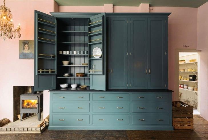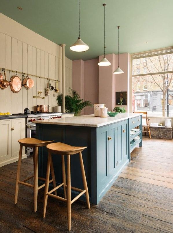 Перед нами оригинальный проект кухни. Она завораживает необычной цветовой гаммой, а также сочетанием разных стилистических направлений. Элементы сельского стиля гармонируют с довольно помпезными аксессуарами.