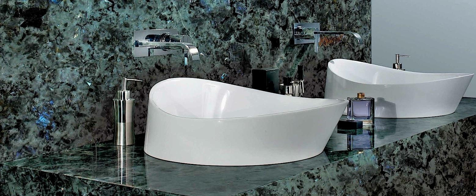 Заказчик проекта долго выбирал среди оригинальных разновидностей элитного интерьера. Рассмотрению подлежала дорогая сантехника, керамическая плитка ручной разрисовки и другие дорогие виды отделки. Выбор мог бы длиться бесконечно, ведь ни один вариант не удовлетворял заказчика в полной мере. Но наконец в одном из каталогов камня он увидел сорт Blue Flowers, который оказался единственно подходящим.