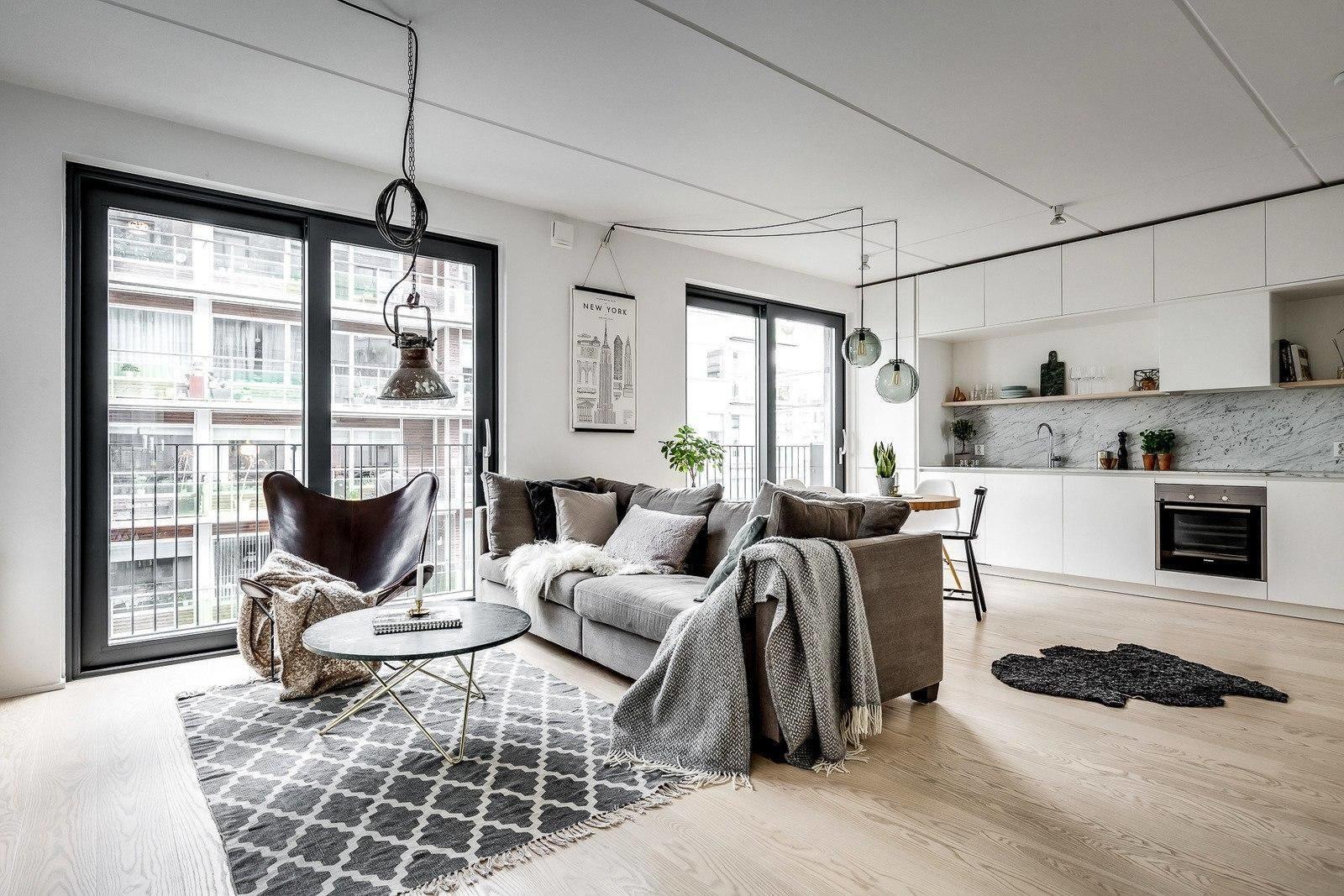 Перед нами современный проект квартиры-студии, воплощенный в модном скандинавском стиле. Простота линий и лаконичность дизайна обогащаются за счет качественных материалов отделки.