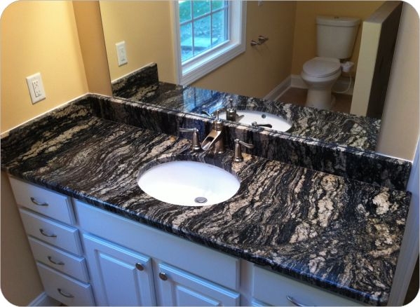 Столешница для ванной с вырезанным под мойку отверстием изготовлена из гранита Black Cosmic. С одной стороны, камень обладает приглушенной цветовой гаммой, органичной для интерьера любого стиля; с другой стороны, его витиеватая узорчатая текстура выглядит крайне оригинально и выразительно. Камень органичен в любом помещении - кухне, ванной, жилых комнатах. Он становится яркой и "динамичной" частью жилого пространства.
