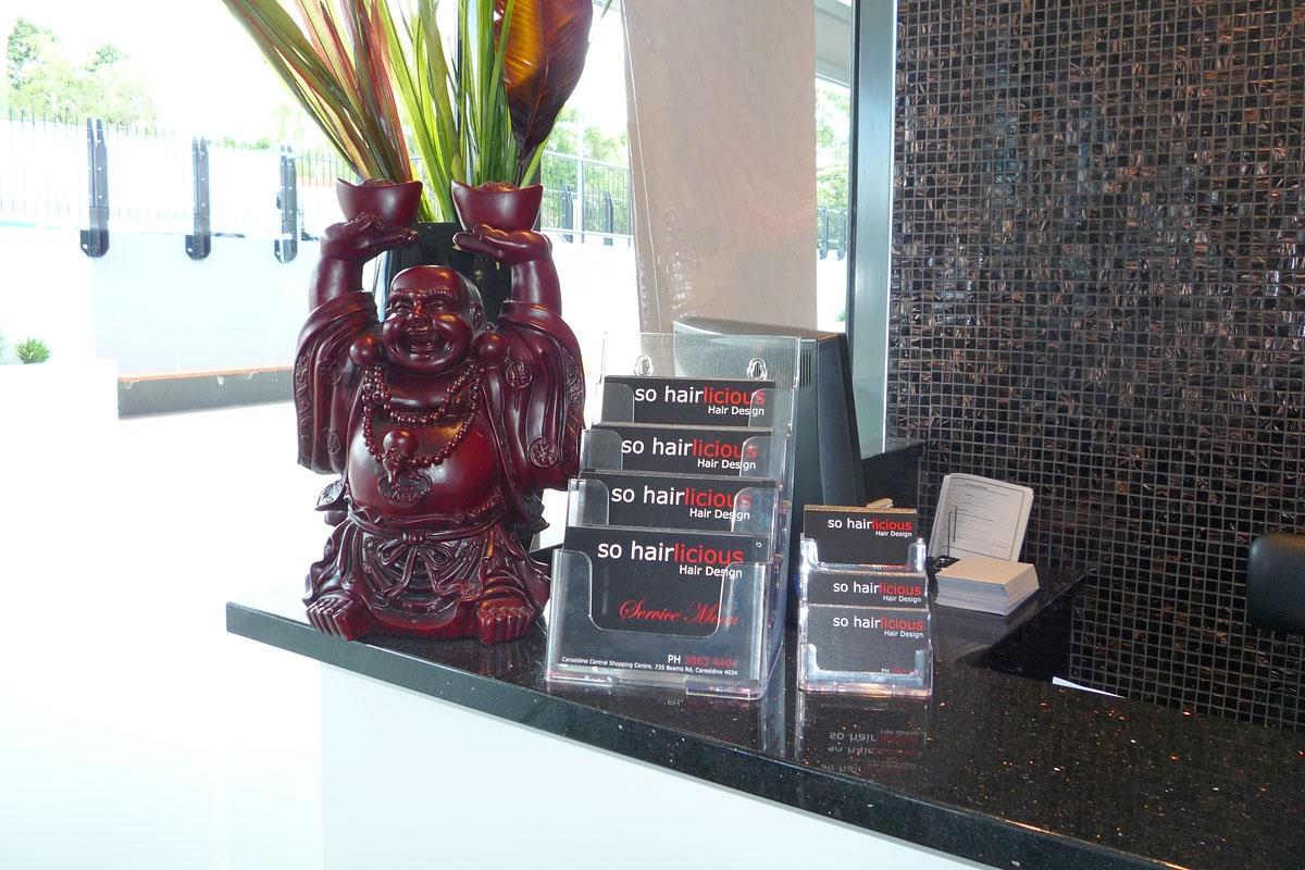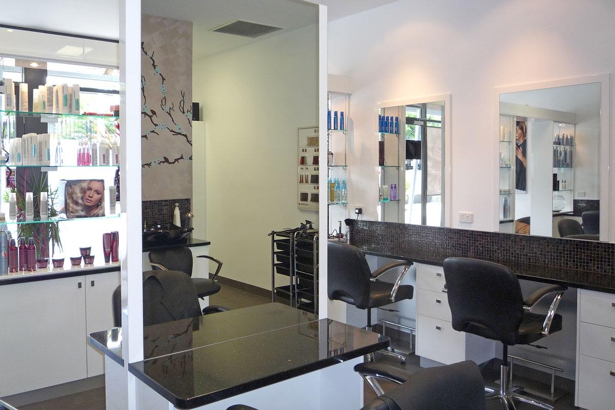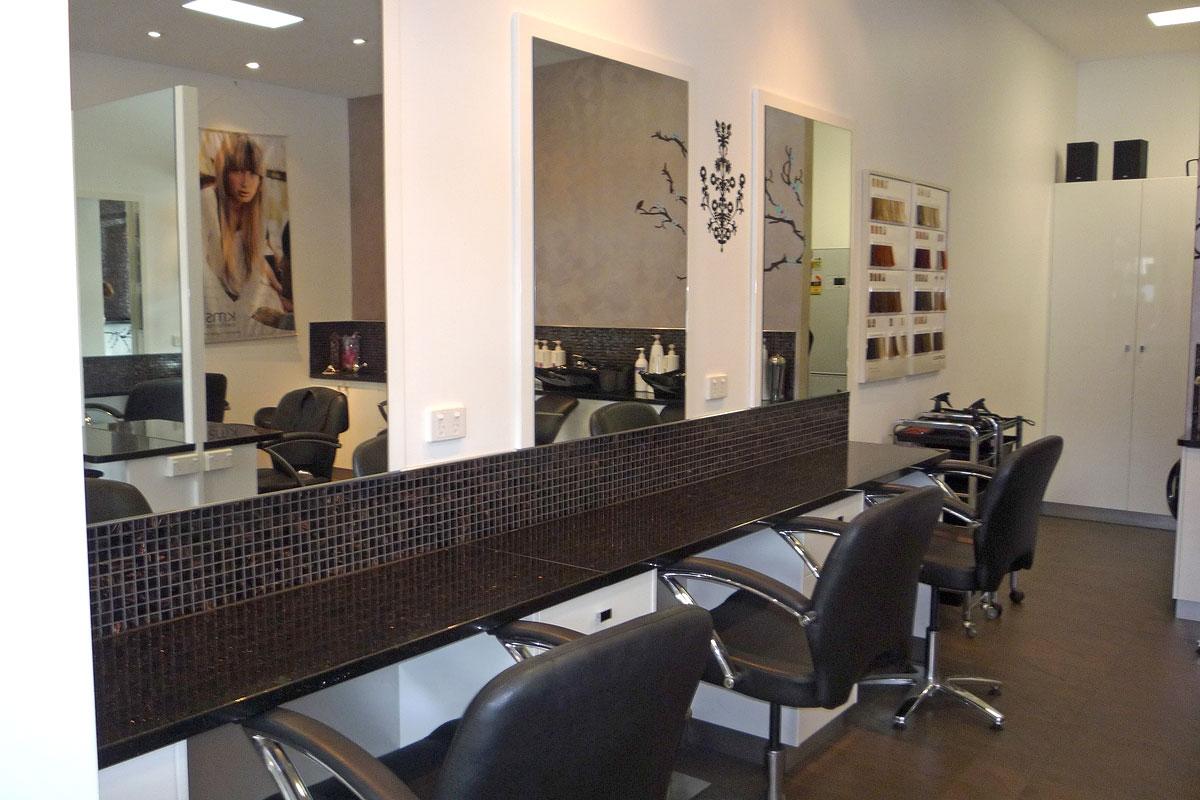 Все столешницы в парикмахерской вырезаны из гранита Black Galaxy - глубокого, черного, с мерцающими минеральными хлопьями во всей массе породы. Этот стильный камень органично встраивается в интерьер любой стилистики, но особенно выразителен в окружении вечной классики - черно-белой отделки. А золотисто-красное мерцание породы привносит в проект свою изюминку.