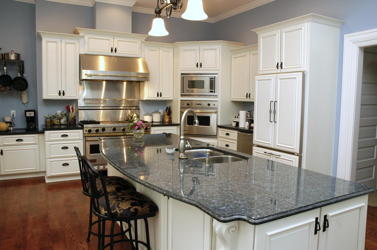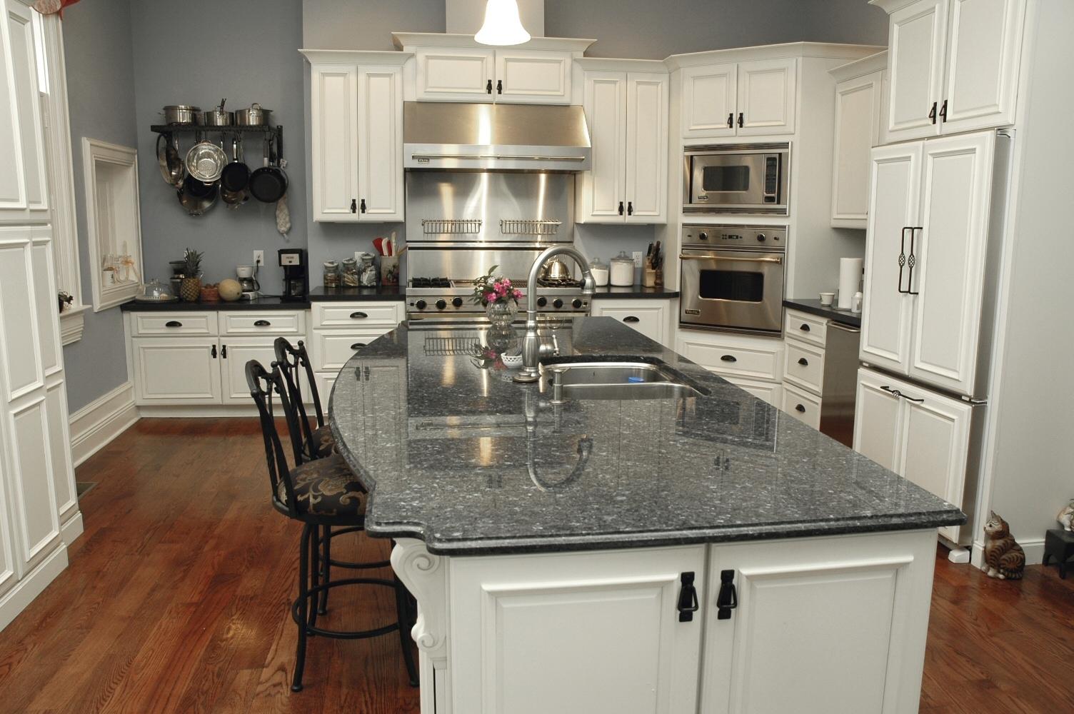 Являясь надежным долговечным материалом для кухни, становится и главным украшением всего пространства. Голубовато-серая цветовая палитра камня подходит для помещений, выдержанных в холодных оттенках или нейтральной черно-белой гамме.