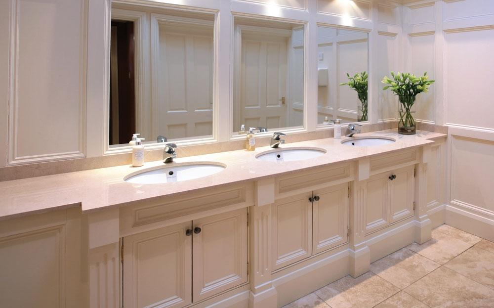 Но нас, конечно, в первую очередь интересует природный камень. Обратим же внимание на столешницу с вырезанными отверстиями под три мойки. Она выполнена из слэба полированного Botticino - мрамора из Италии, уже много лет являющегося образцом классической каменной красоты.