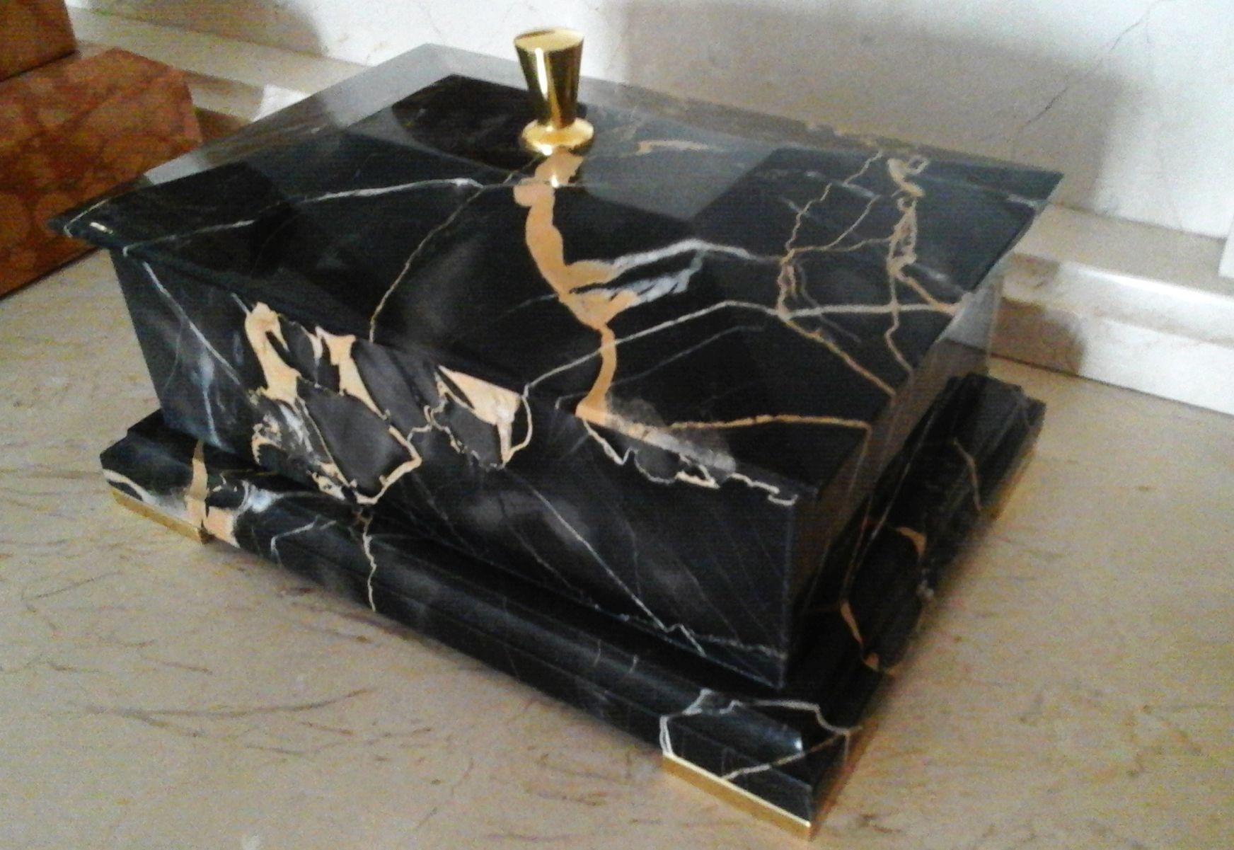 Мастера "Камнемира" продолжают создавать единичные и абсолютно уникальные сувениры из природного камня. Теперь речь идет об изготовлении шкатулки для драгоценностей. Для соответствия в качестве материала был выбран один из самых дорогих сортов мрамора в мире - Nero Portoro.