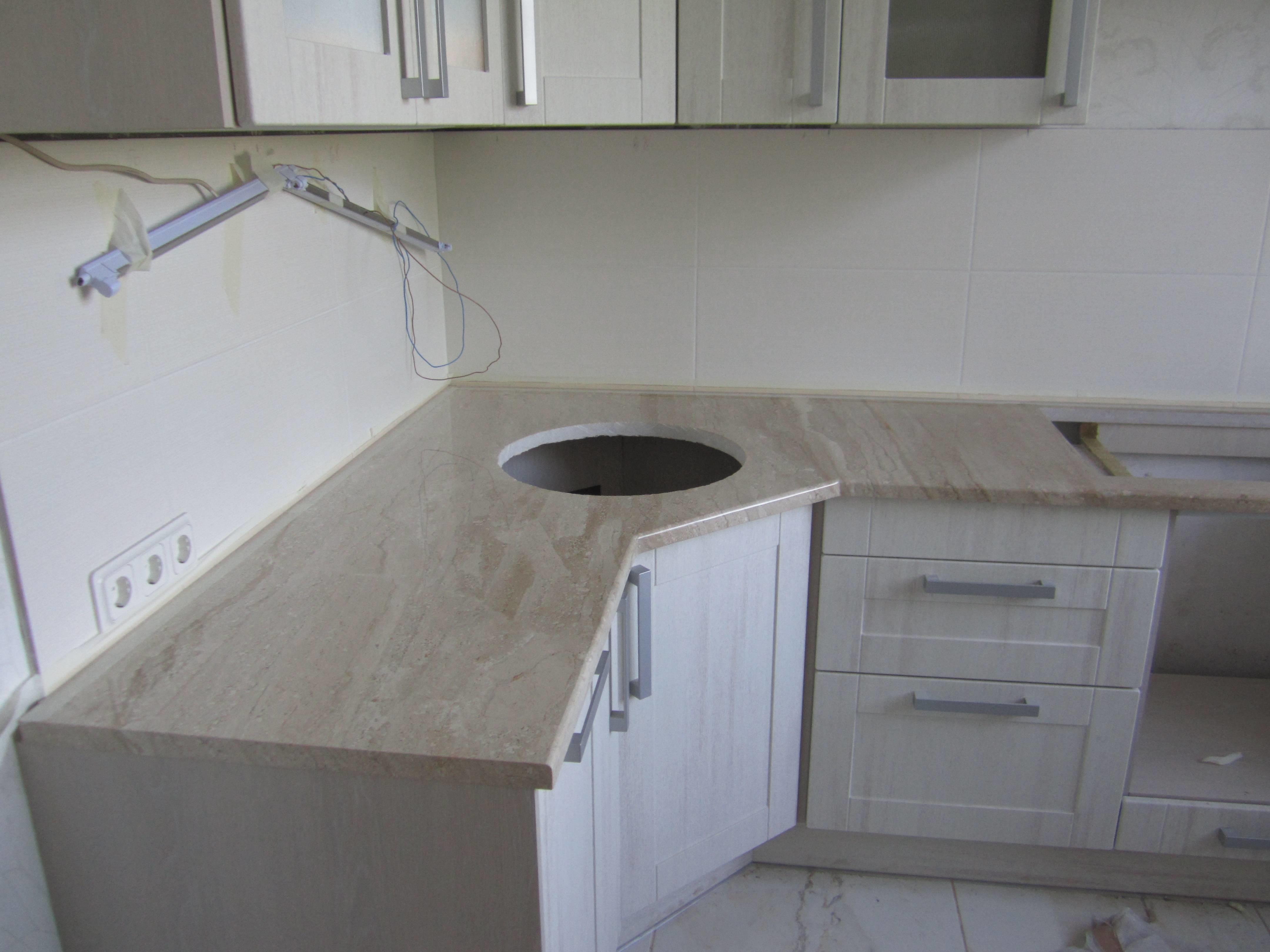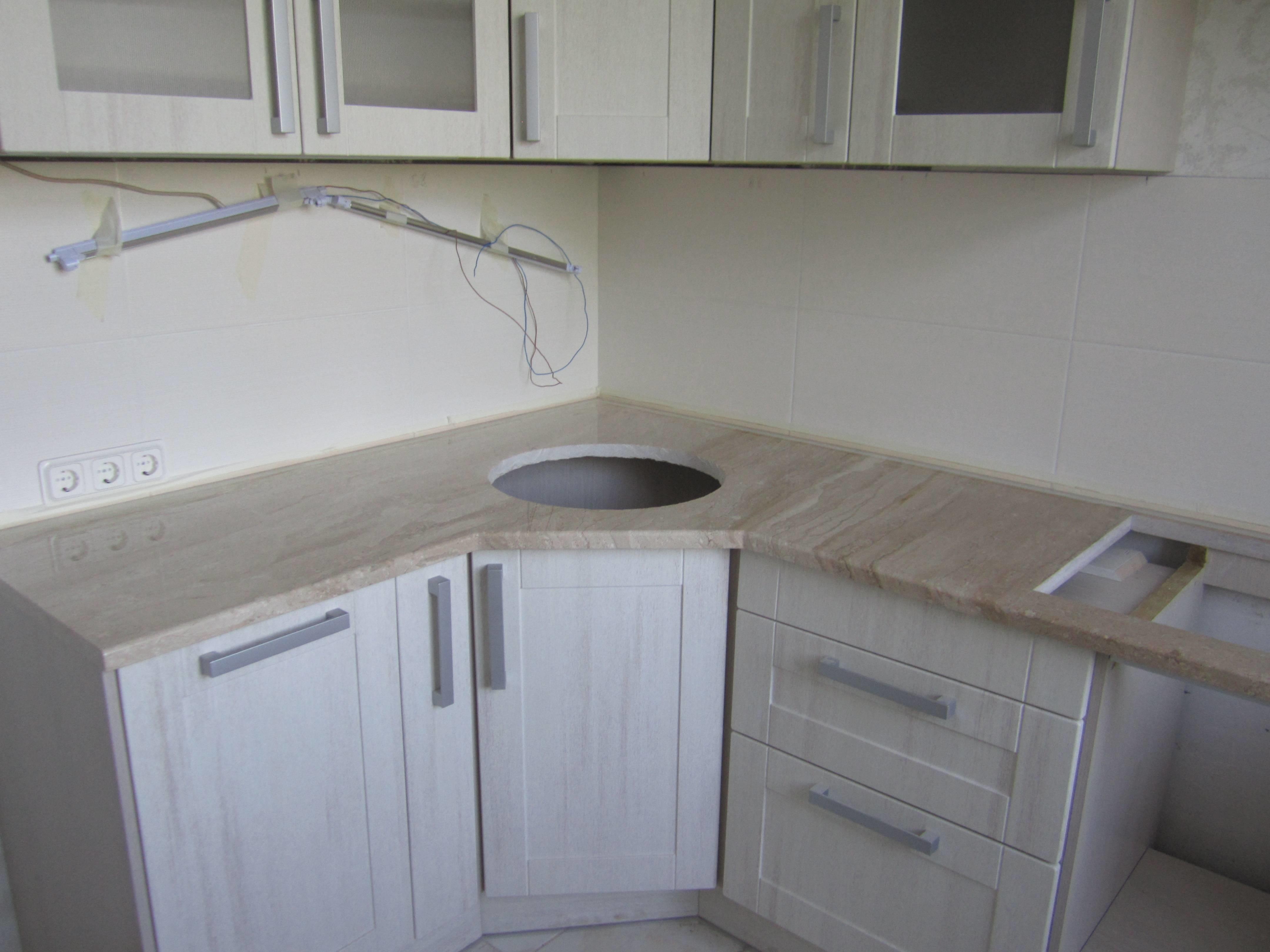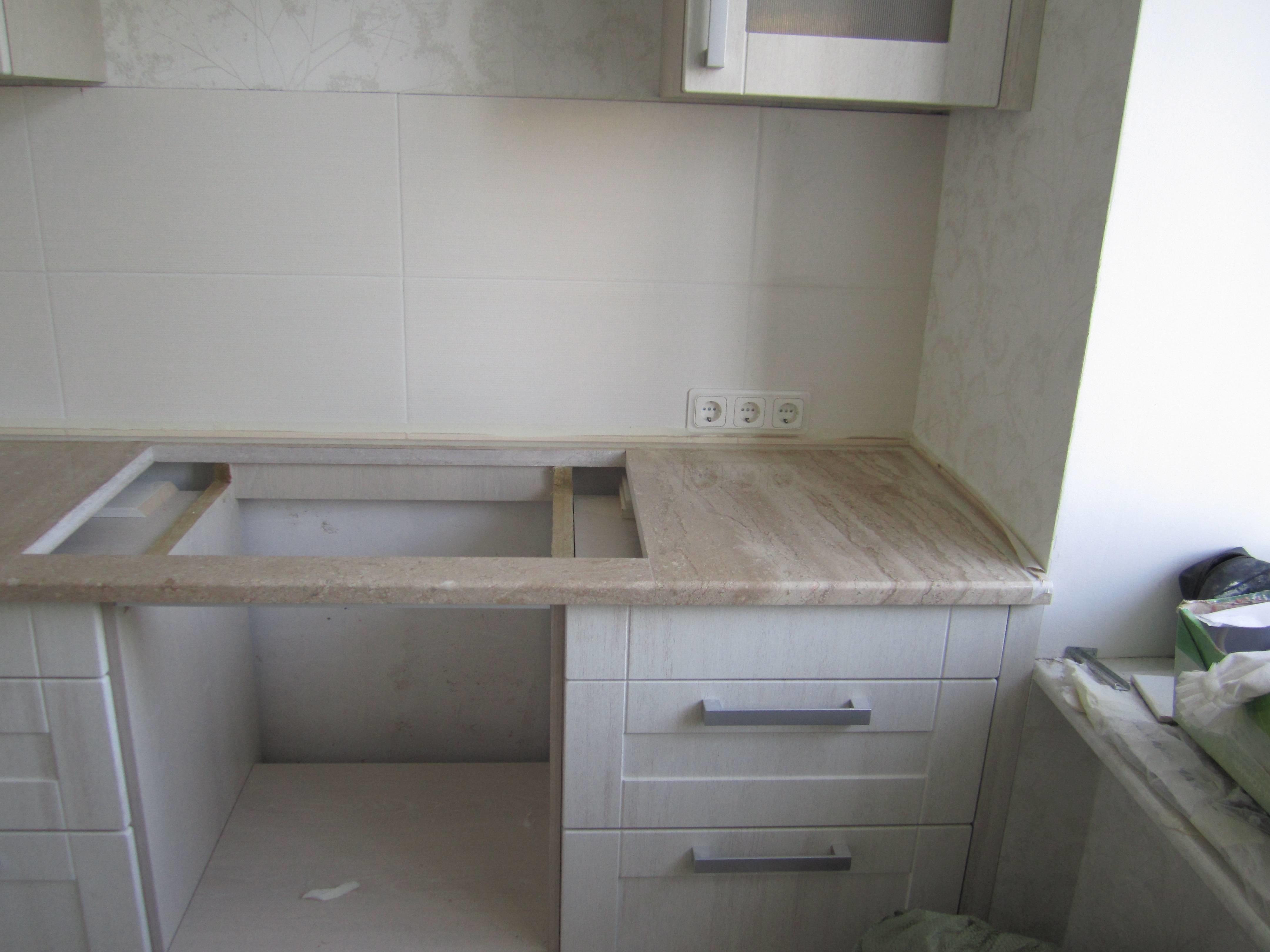 Здесь представлен наш проект кухонной рабочей зоны. К сожалению, есть только снимки, сделанные на этапе монтажа. Они дадут общее представление о ходе работ по установке столешниц.