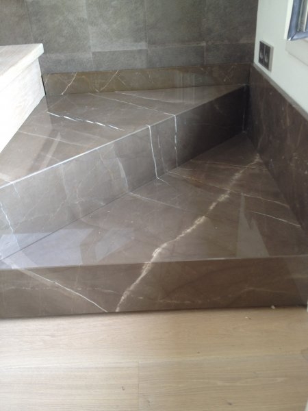 Для проекта был заказаны плиты мрамора Bronze Amani толщиной 2 сантиметра, с полированной фактурой.