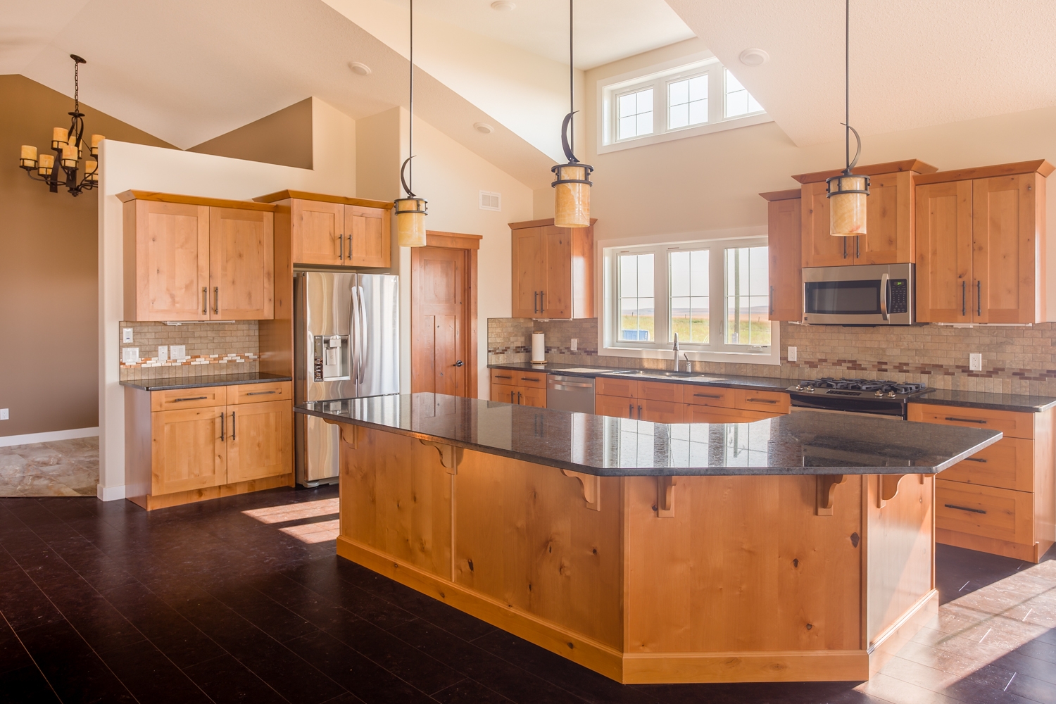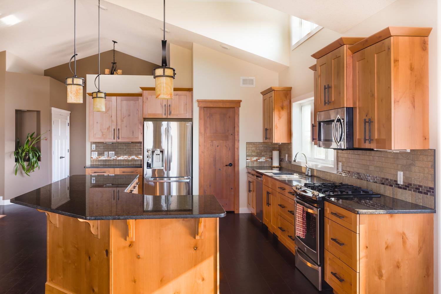 Столешницы этой кухни покрыты надежным и изысканным гранитом Coffee Brown. Этот прочный и твердый камень обладает глубоким коричневым оттенком и интересной, слегка мерцающей текстурой. В полированной фактуре гранит Coffee Brown приобретает глянцевую, почти зеркальную поверхность. Создается атмосфера лоска и визуальная иллюзия расширения большего пространства.