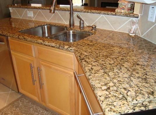 Камень подобран под цветовую гамму всей кухни - цвет деревянного гарнитура и облицовочной плитки.