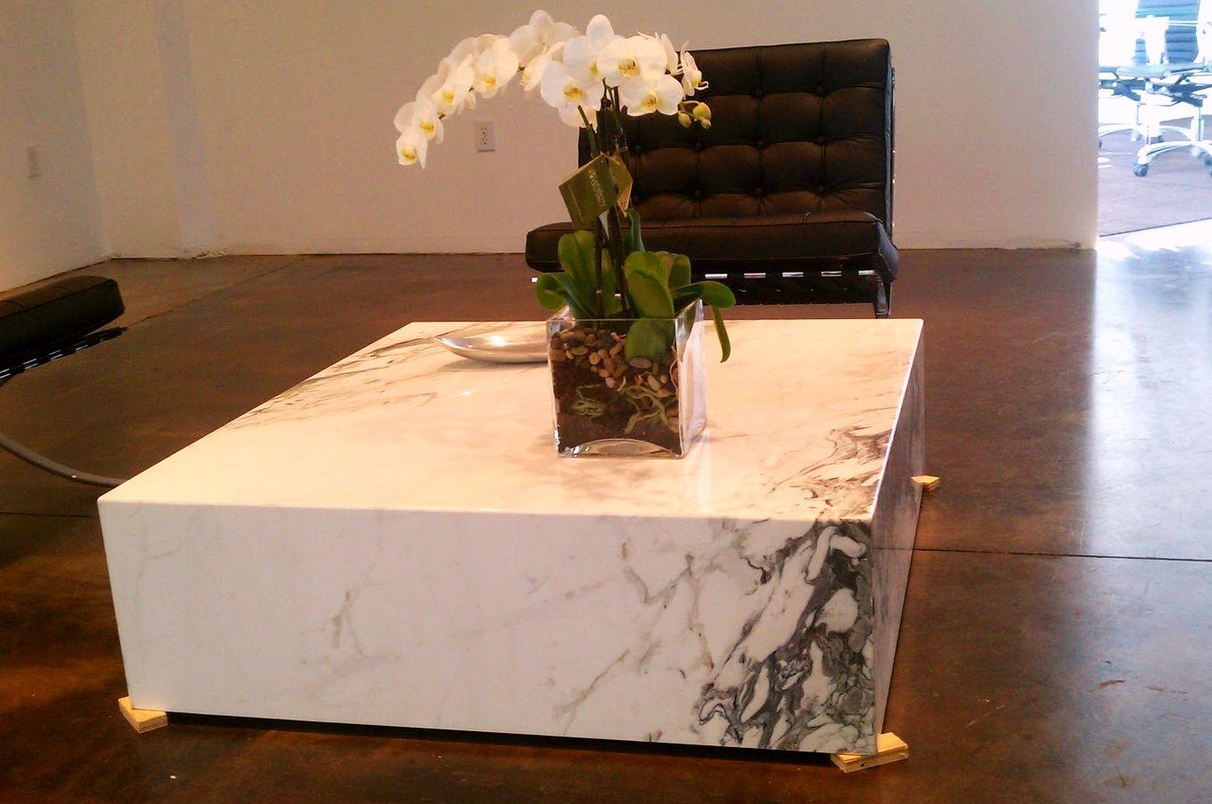 Этот журнальный или кофейный столик производит впечатление монолитности - он будто бы вырезан из массивного блока породы. Даже рисунок на гранях совпадает. Но на самом деле столик образован склейкой каменных полос и плиты, распиленных от одного слэба.