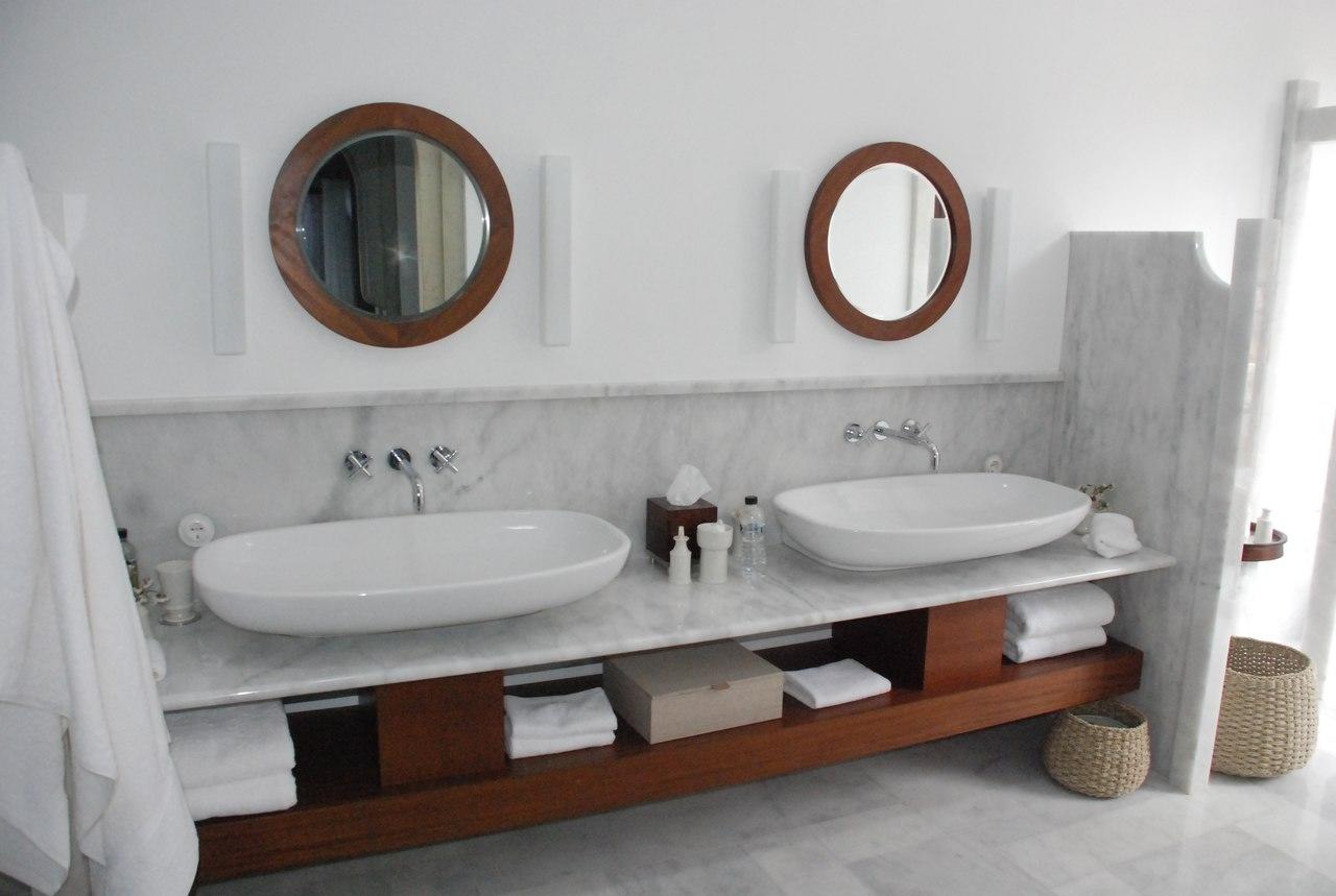 Также из этого мрамора выполнена столешница под раковины и примыкающий к ней фартук.