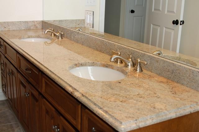 В данном проекте столешница вырезана из полированного гранита Chiffon золотисто-кремового тона. Камень органично встраивается в окружающее пространство, привнося в него свою солнечную энергетику. Резной торец полированной столешницы добавляет нотку лоска, завершая облик этой зоны.