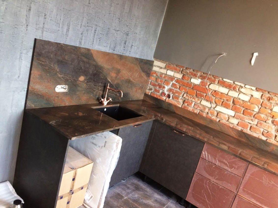 Этот проект мы выполняли для заказчиков из Минска. Владельцы новой квартиры, оформленной в стиле лофт, настолько загорелись самобытным рисунком кварцита, что готовы были ждать его доставки из Санкт-Петербурга.