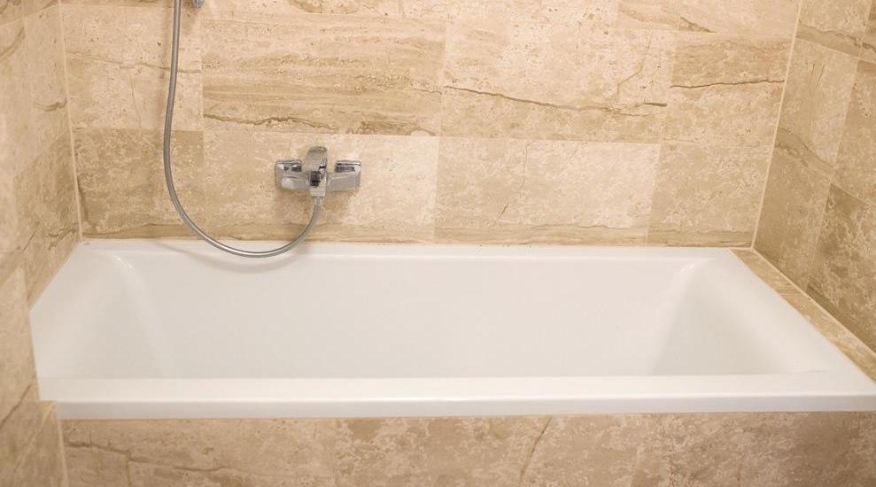 Плитами Diano Reale облицовано все пространство ванной - пол, стены и полки. Также им отделан постамент, обрамляющий ванну.