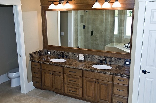 Столешница, обрамляющая раковины в ванной комнате, вырезана из испанского темно-коричневого мрамора Emperador Dark. Этот камень будто создан для формирования основательного и благородного интерьера. Его цветовая гамма колеблется от светло-орехового до цвета темного шоколада; это очень изысканный и характерный камень. Он превосходно сочетается с деревом, керамикой, стеклом и другими материалами отделки.