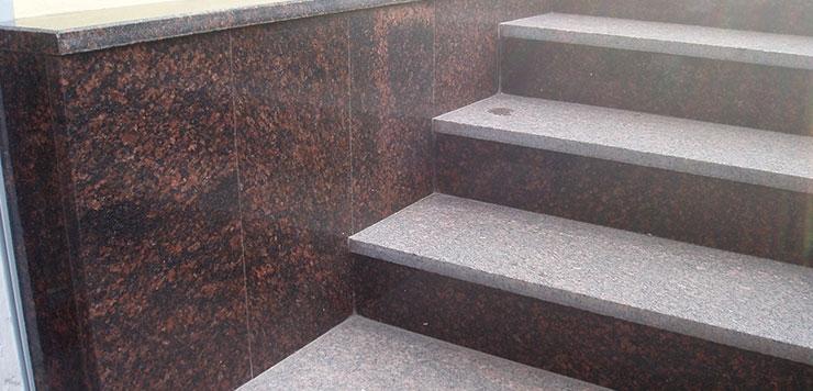 Отделка входной группы выполнена из Дымовского гранита. Вертикальные поверхности облицованы полированным гранитом, а горизонтальные - шлифованным. Как известно, шлифованный гранит менее травмоопасен - на нем почти невозможно поскользнуться. Это особенно важно в нашем климате - зимой в условиях наледи и мороза.