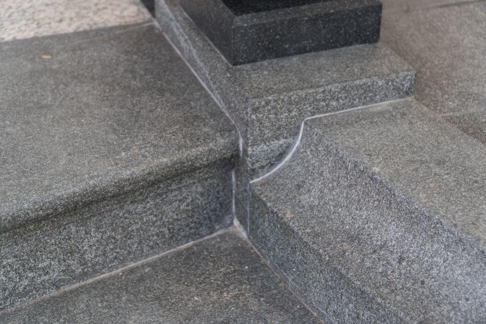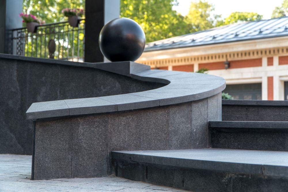 Входная зона выдержана в темно-серой и черной гамме. Здесь мы использовали 2 недорогих, но надежных сорта гранита: классический российский Габбро и китайский базальт Berry Black.