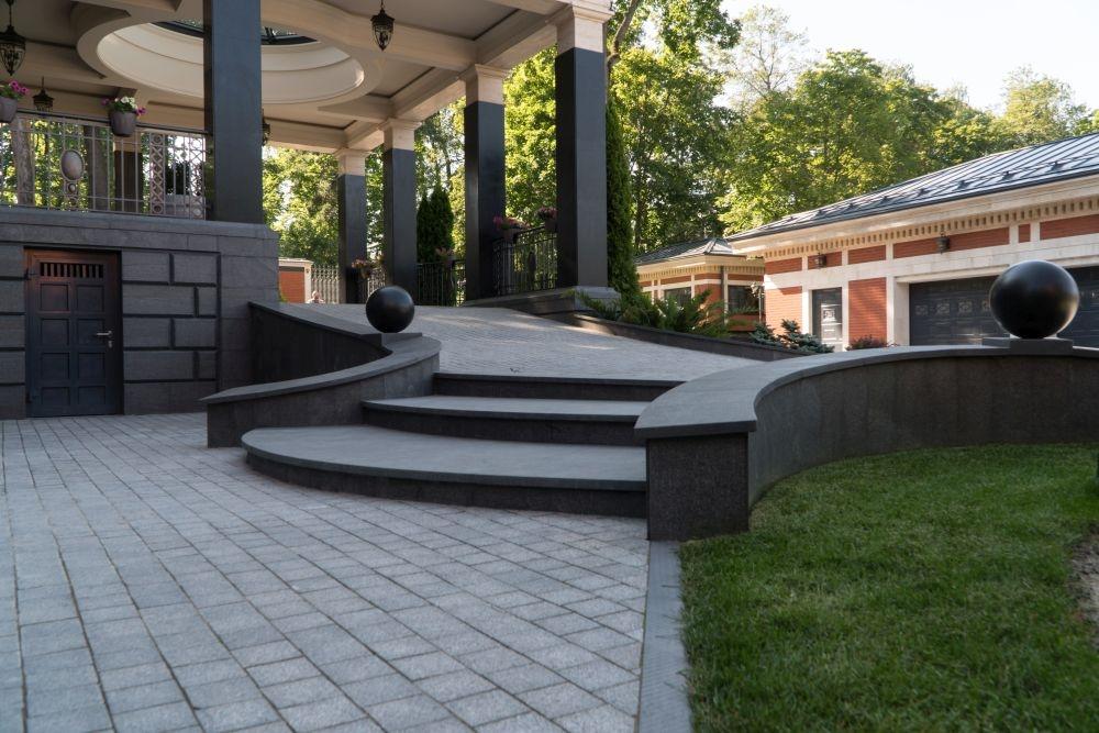 Предлагаем Вам обратить внимание на входную зону дома - парадную лестницу с колоннами, баллюстрадами, пандусами и скульптурными элементами.