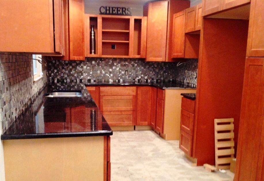 Все кухонные столешницы вырезаны из полированного черного базальта Black Galaxy.