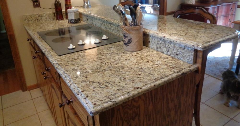 Все рабочие поверхности этой кухни выполнены из итальянского золотисто-бежевого гранита Giallo Veneziano. Этот камень, название которого переводится как "Золото Венеции" обладает выраженной зернистой текстурой в теплой гамме желтоватых оттенков.