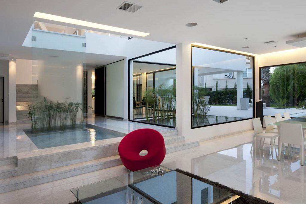 Перед нами проект сверхмодной отделки загородного дома в Аргентине. Стеклянный дом, полный света и воздуха, облицован элитными материалами. Доминирует же во всей композиции классический камень, актуальный во все времена, - каррарский мрамор Bianco Carrara Gioia. Нежно-серый, прожилковатый, мелкозернистый Bianco Carrara Gioia с полированной фактурой обладает глянцевой поверхностью. Он создает благородную и изысканную атмосферу.