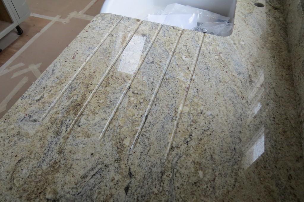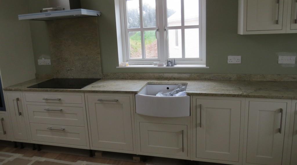 Мы видим кухню на завершающем этапе отделки. Осталось лишь встроить сантехнику, и тогда владельцы получат основательное и функциональное кухонное пространство.