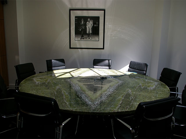 Это прекрасное и оригинальное решение для офиса. Травянисто-зеленый цвет камня балансирует атмосферу в помещении, способствует умиротворению и концентрации внимания.