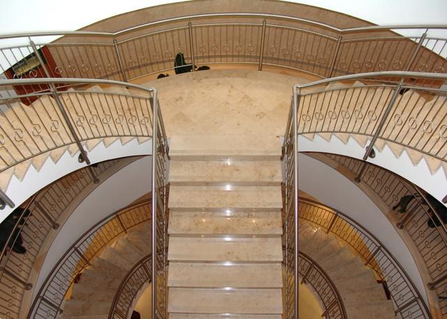 Центральная лестница отеля представляет собой сложную многомаршевую конструкцию сферической формы.