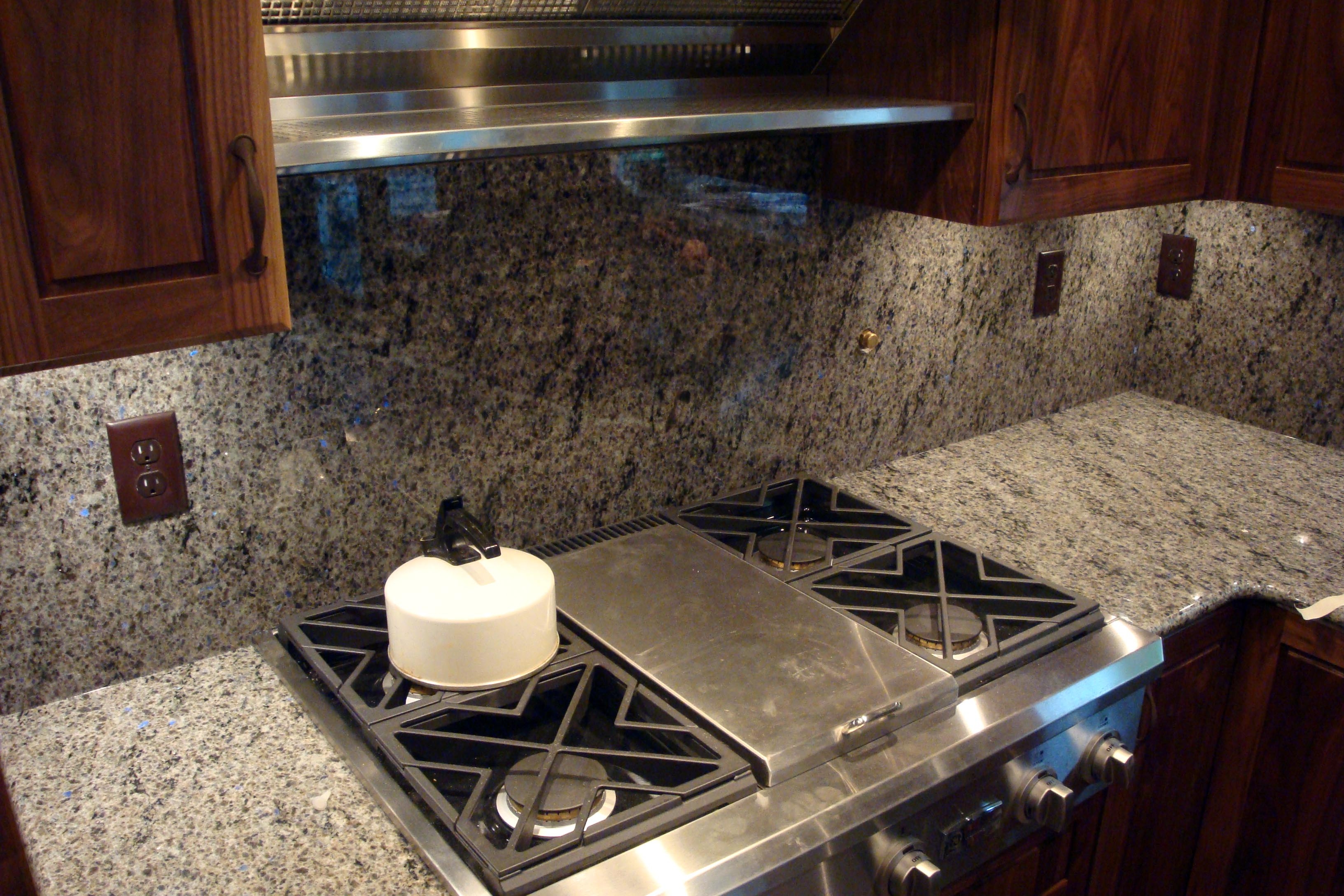 Удивительный гранит (лабрадорит) Blue Eyes использовался для создания столешницы и облицовки стен. Органичный серый цвет в сочетании с иризирующими зернами сделал этот камень одним из самых востребованных в дизайне интерьеров.
