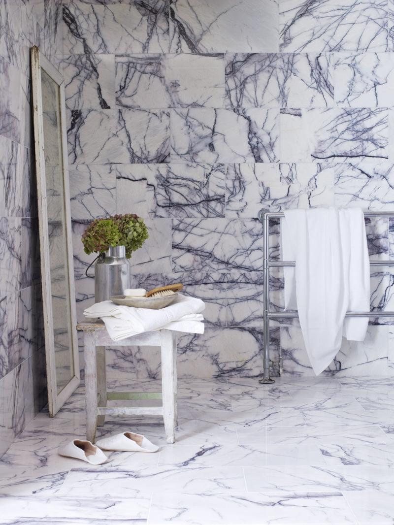 Эта просторная и простая ванная комната облицована крупной плиткой мрамора Milas Lilac - здесь он стал самодостаточным, единственным украшением пространства. Согласитесь, такая отделка не нуждается в дополнительных декоративных элементах интерьера?