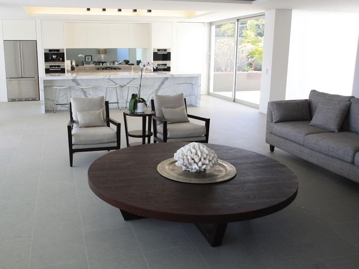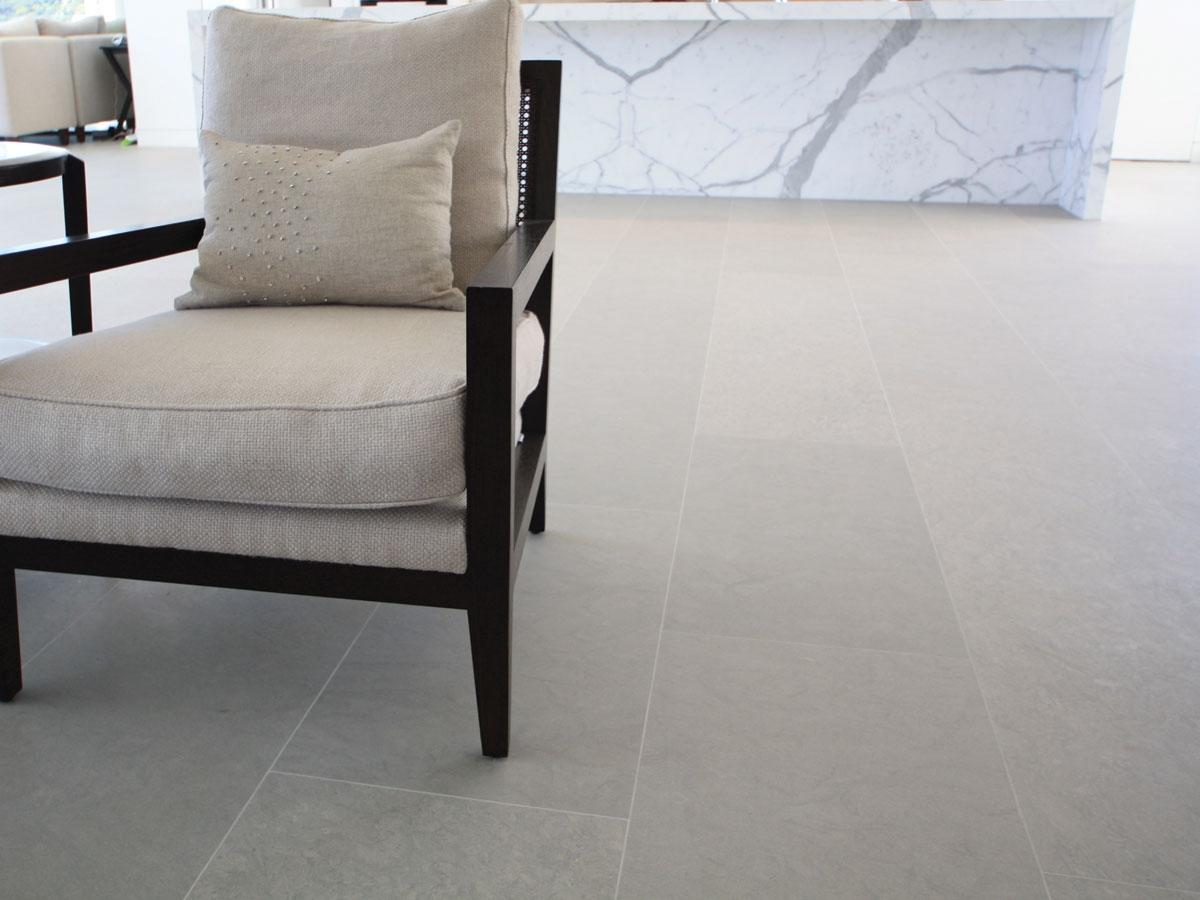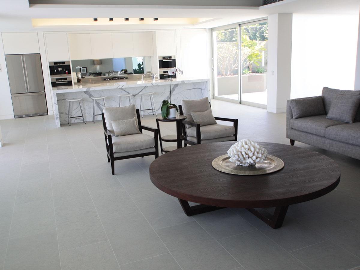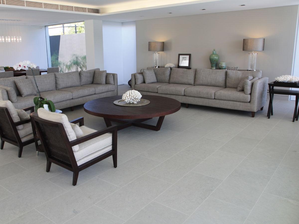 Пол загородного дома повсеместно облицован крупной плиткой испанского известняка Beige Verona. Серо-бежевый камень с легкими разводами только выигрывает в случае лощеной фактуры - бархатистая поверхность без блеска смотрится современно и стильно. Этот камень гармонично сочетается как с другими материалами, так и с предметами интерьера любой стилистики.