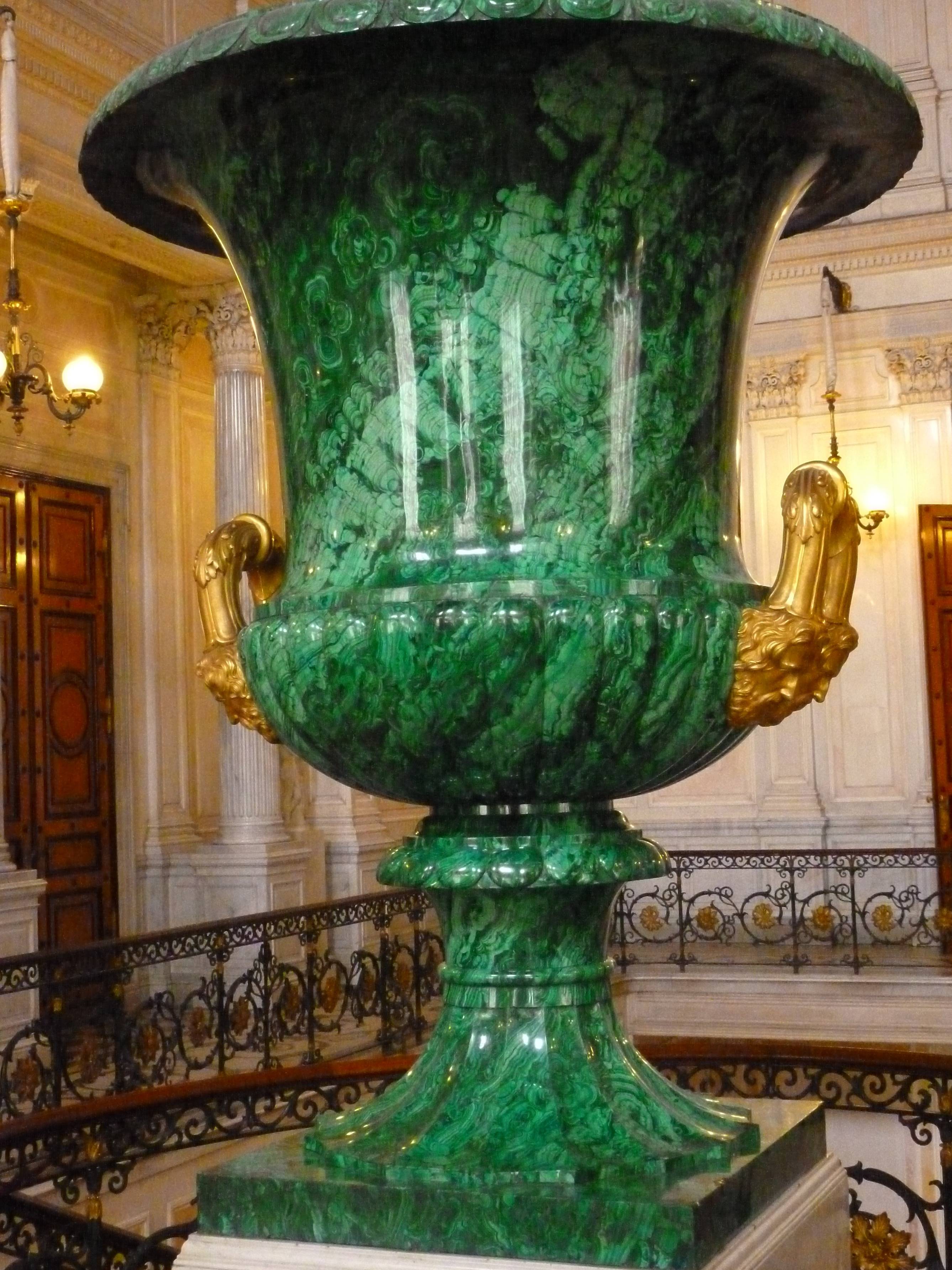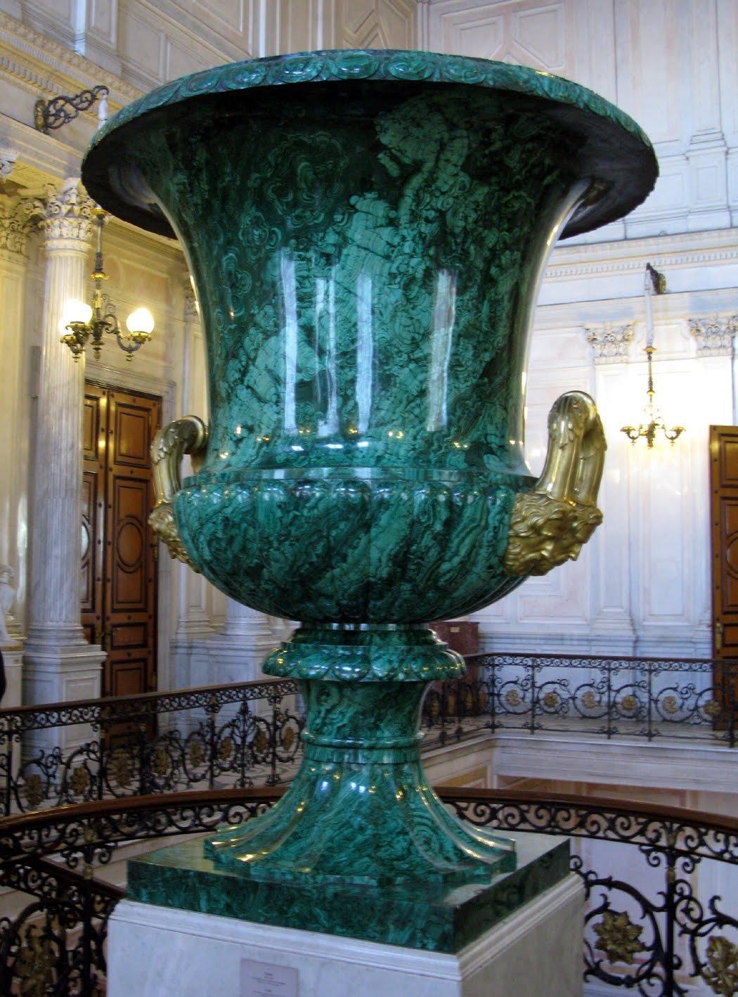 Здесь представлен легендарный проект - малахитовая ваза, украшающая парадную лестницу петербургского Эрмитажа.