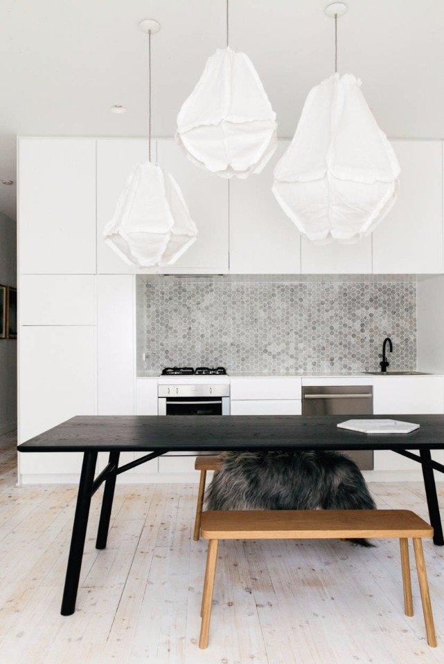 Мы видим недавно реализованный проект просторной квартиры в Австралии. Интерьер решен в современном стиле, сочетающем, на первый взгляд, противоположные вещи. Здесь присутствуют элементы минимализма, скандинавского и сельского стилей. Здесь современный акриловый камень, пластик и металл органично совмещены с благородным итальянским мрамором и мебелью из грубого дерева.