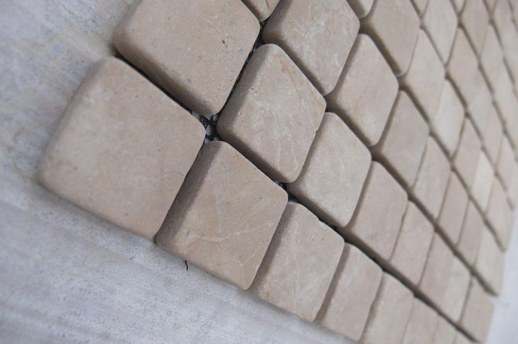 Мы решили сделать мозаику из юрского мраморизованного известняка бежевого цвета — Jura Beige. Этот камень отлично встраивается в любой проект, но также он удивительно долговечен и пластичен.